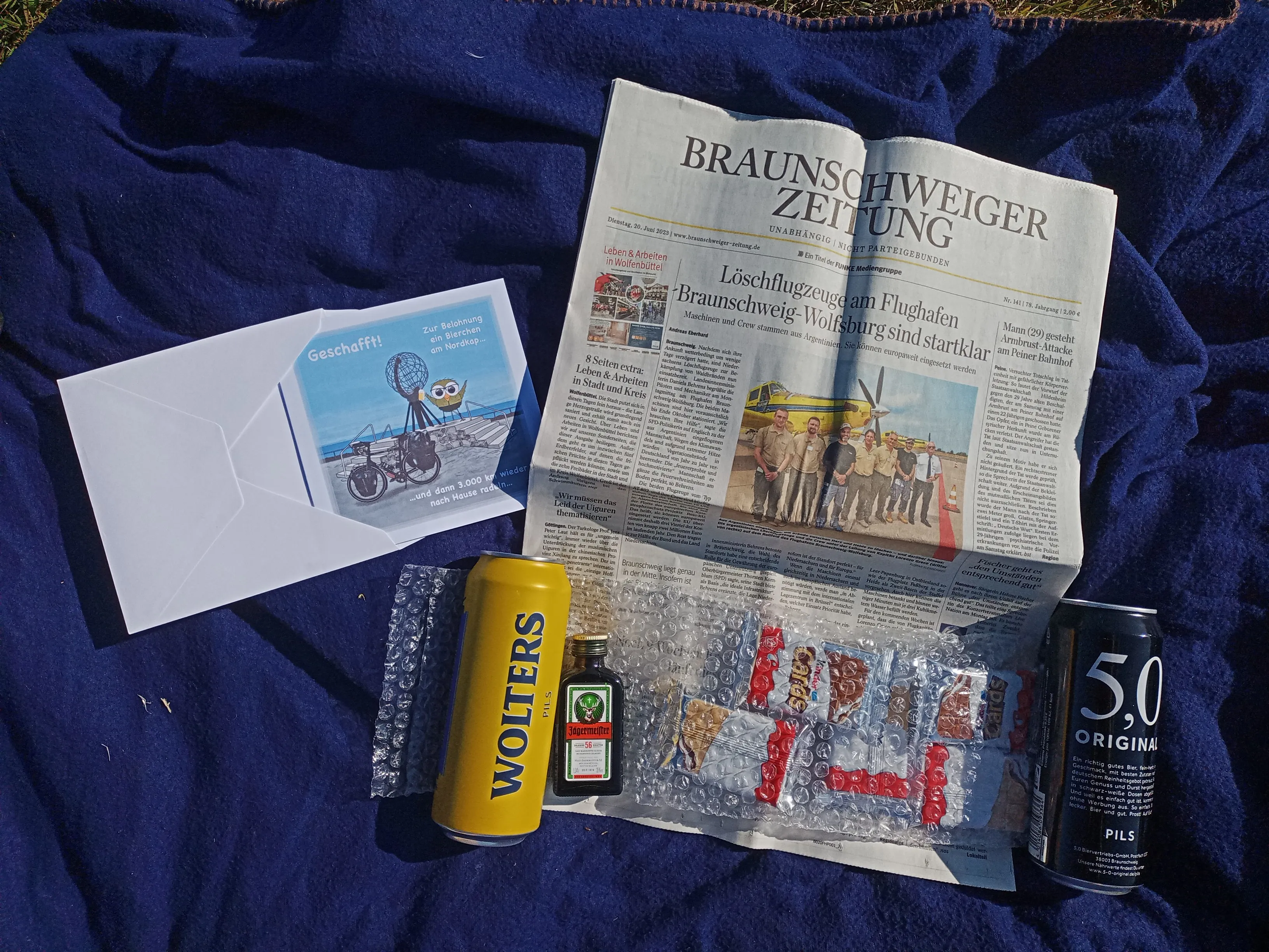 Wo wir gerade bei dem Paket sind, ich habe wieder Bier, denn meine Geschwister habe mir ein Paket zum Nordkap geschickt. Ohne mir bescheid zu geben. 😄 Mein ausnüchternder hat es mir bei einem Telefonat dann gesteckt. Zu meinem Glück ist das Paket pünktlich am Montag, nicht am Campingplatz, sondern in einem Paketshop in Honningsvåg angekommen. 🥳